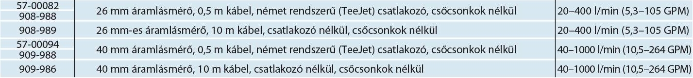 Többféle áramlásmérő választható, amelyek megfelelnek a kijuttatási feladathoz. Áramlásmérők 3 l/perc (0,8 GPM) kapacitástól 1500 l/perc (400 GPM) kapacitásig választhatók különféle stílusokban és csapágyanyagokkal.