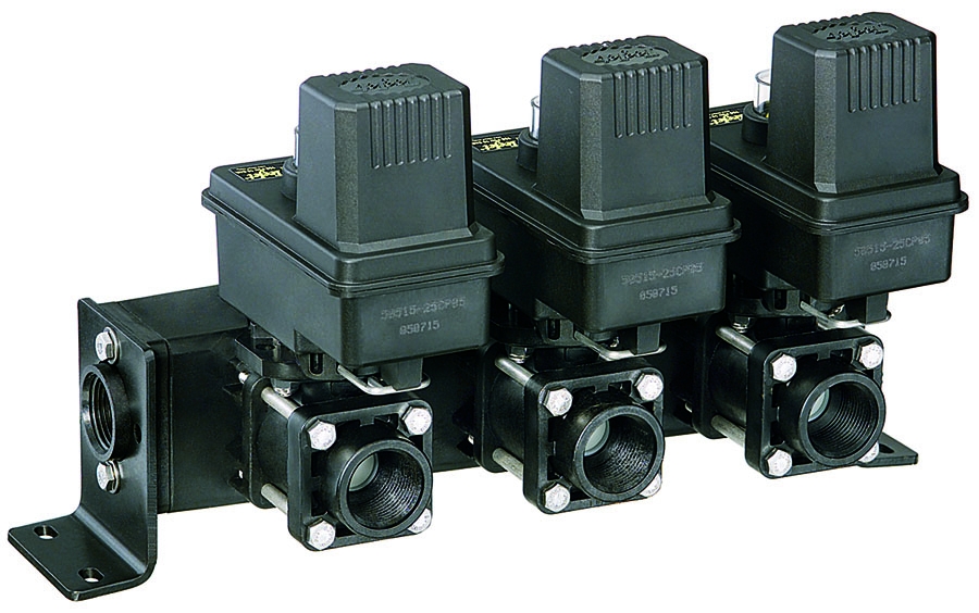 A TeeJet® 440BEC sorozatú DirectoValve szeleptömb kényelmes, kompakt megoldás több 344BEC elektromos golyós szelep telepítéséhez. Ez a rendszer szükségtelenné teszi a cső- vagy tömlőelágazások házi elkészítését, ezáltal jelentősen csökkenti a felszereléshez szükséges időt és a folyadékszivárgás lehetőségét.
