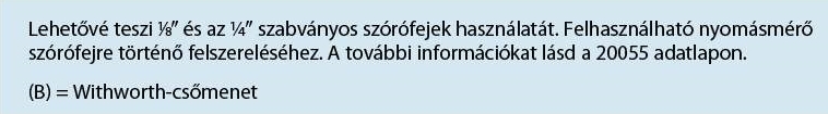 - 20 bar (300 PSI) maximális üzemi nyomás.