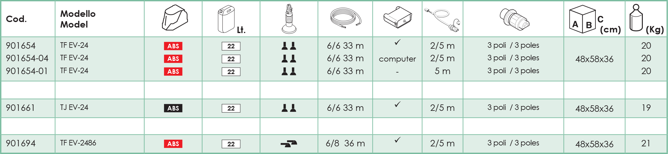 Mindenfajta berendezéshez alkalmas ECO standard tartomány, mostanában fejlesztve: új tartálykivitel, beleértve a szintjelzőt és fogantyút a betöltési eljárás javításához. Kompakt elektromos kapcsolódoboz, beleértve a billenő tartót, biztosítékot és működésjelző LED-et. Tartálysapka műanyag biztonsági szeleppel és nem visszafolyó, nagyon érzékeny membránszeleppel. Hab diffúzor eltávolítható dupla szivaccsal, rugalmas és ellenálló.