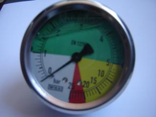 Glicerin csillapítású nyomásmérő óra, a permetezéstechnika mellett ipari célokra is alkalmazható.