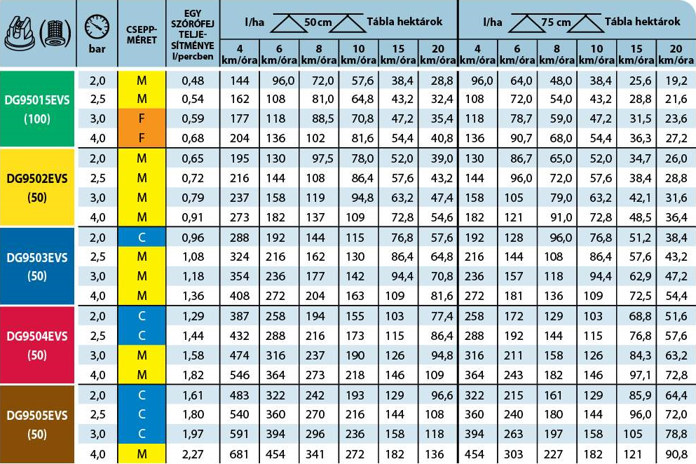 - A szórólapka kivitel nagy cseppeket állít elő az elsodródás csökkentésére.
