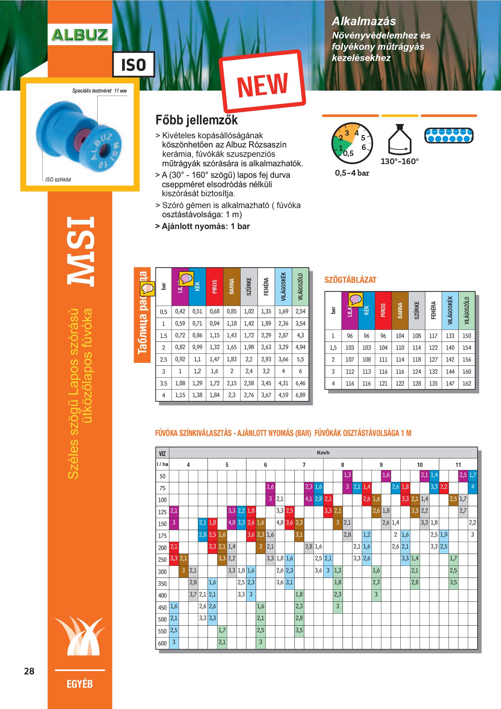 A széles szórásszögű lapos fej,durva cseppméret elsodródás nélküli kiszórását biztosítja.