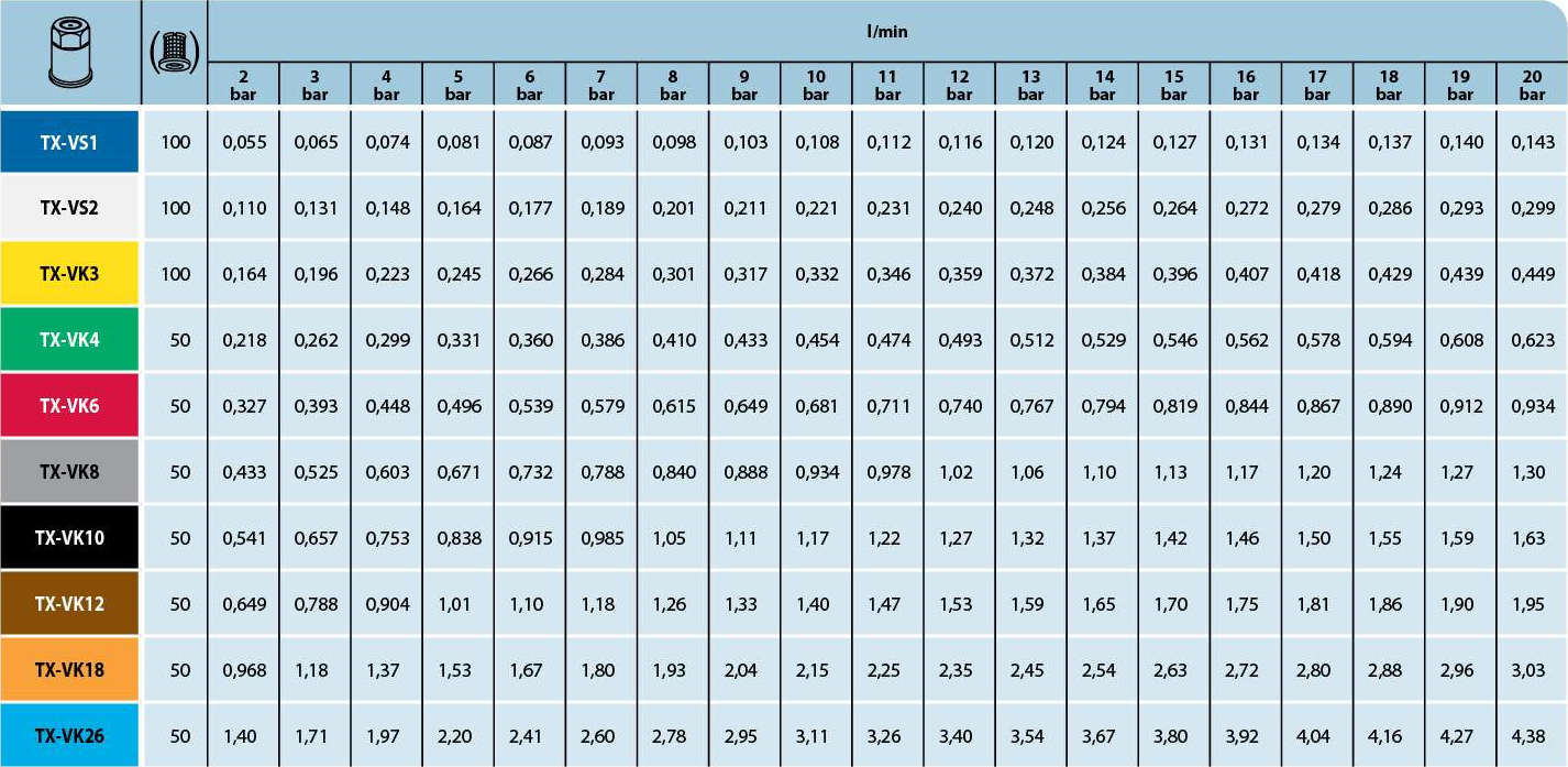 - A TX-VS1 és a TX-VS2 csak Visiflo színkódolású rozsdamentes