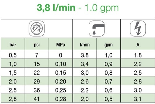 Max. teljesítmény: 3,8 l/min (1 gpm)