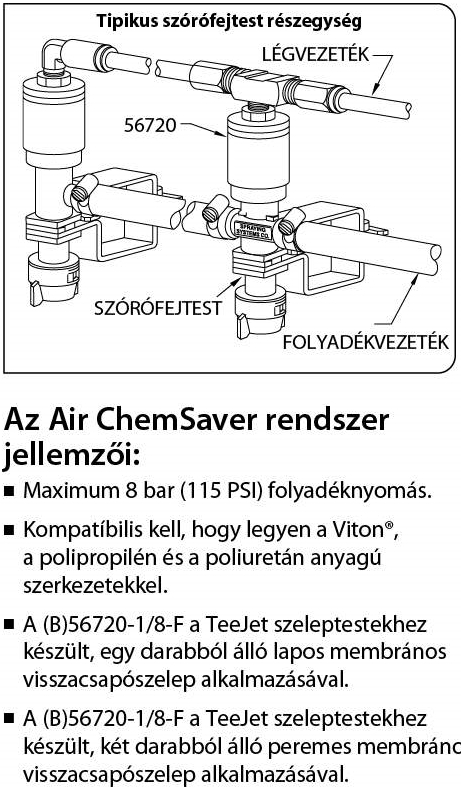 - Használható a legtöbb, membrános visszacsapószeleppel felszerelt Teejet fóvókatartóval.