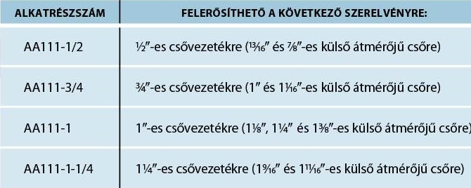 Felhasználható: 1/2",3/4",1", vagy 1-1/4" csővezetékre.