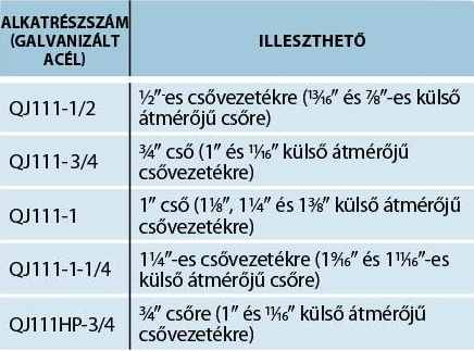 Felhasználható: 1/2",3/4",1", vagy 1-1/4" csővezetékre.