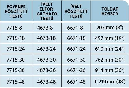 - Használható 4673 és 6671- max. 9 bar (125 PSI) nyomásra.