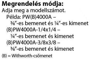 - Csatlakozások: 1/4" vagy 3/8" (amerikai,Withworth)