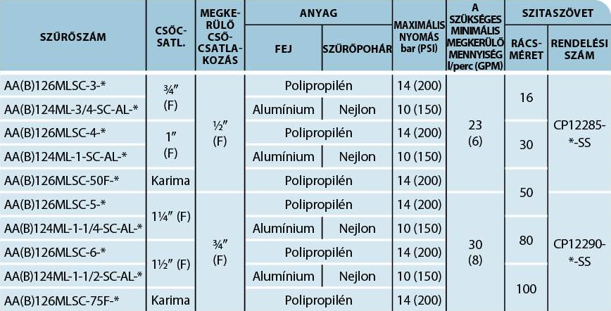 -Szűrőbetét cikkszáma II.: CP12290-(finomság)SS (1-1/4",1-1/2")