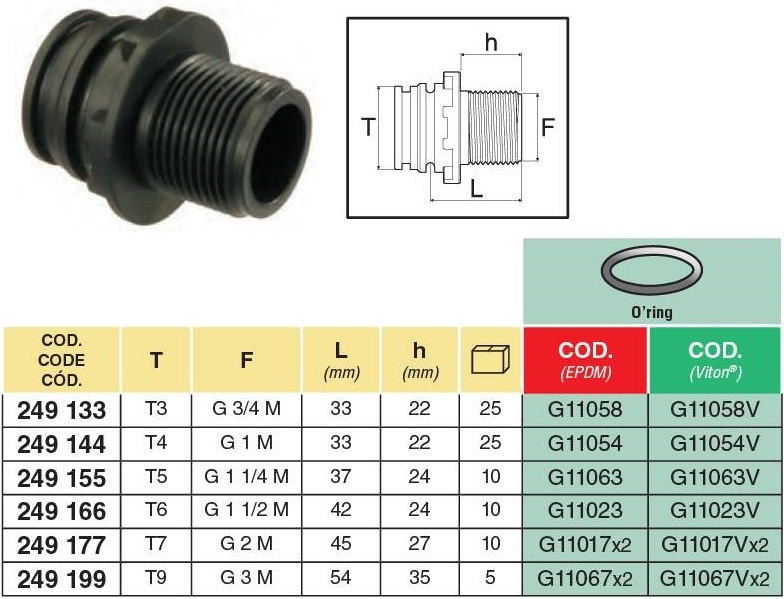 ARAG T villás -menetes csatlakozó T-KM (apa) T3-tól T9-ig