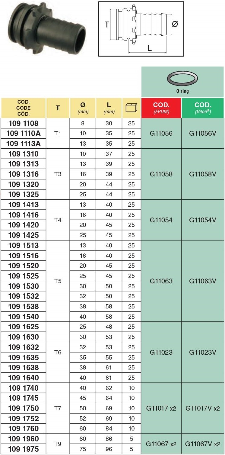ARAG tömlővéges egyenes T csatlakozó (apa) T1-tól T9-ig 8mm-75mm-ig