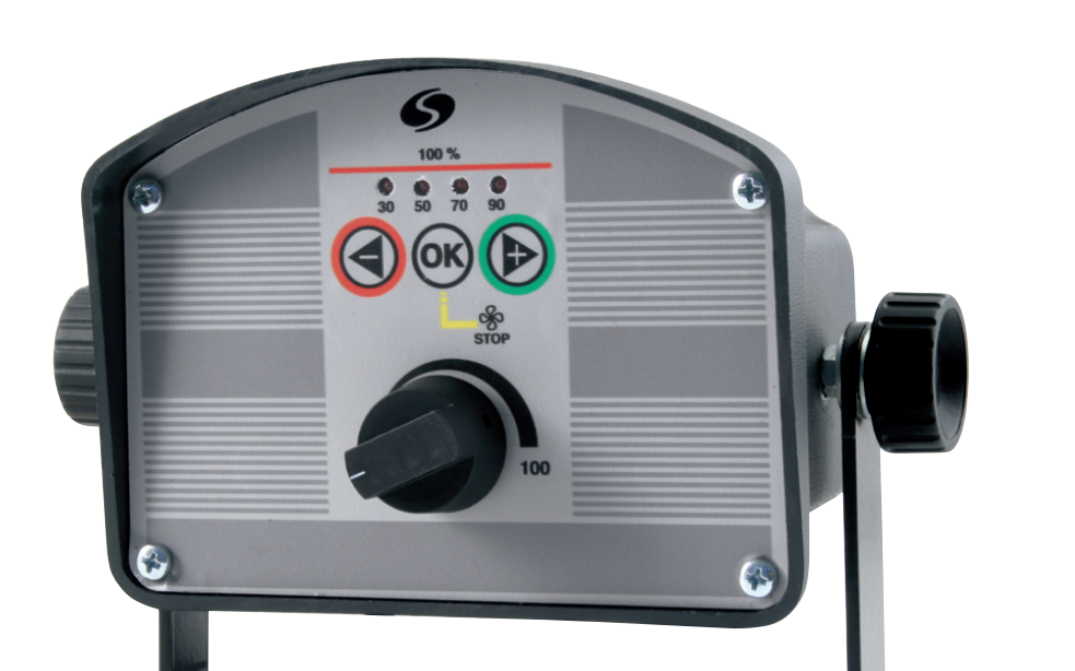 Vezérlődobozok a proporcionális szolenoid olajszelepekkel ellátott rendszerekhez. Egy potenciométerrel ellátott gomb és egy speciális proporcionális áramkör a szelepre hat az olajáramlás módosításának céljából. Egy ON/OFF kapcsoló tárolja a memóriában a korábban beállított levegőáramlás beállítását. Jellemző alkalmazás: ventilátor forgásának változásai a levegőrendszerű permetező szórókeretekkel kombinálva. Kérésre forgásérzékelő és fordulatokat mutató kijelző is kapható.