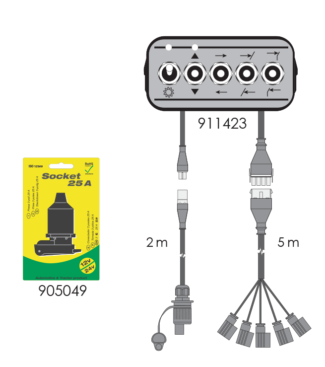 Egy P50 vezérlődoboz, amely nyírógépekhez vagy speciális szolenoid szelepes berendezésekhez alkalmazható. On-off egyszeres elektromos-szelep vezérlés az olajszivattyú forgatásához, és a 4 alkalmazáshoz, valamint a kettős működésű szolenoid szelepekhez. A készlet tartalmazza a 4 m vezetéket és a tápvezetéket.
