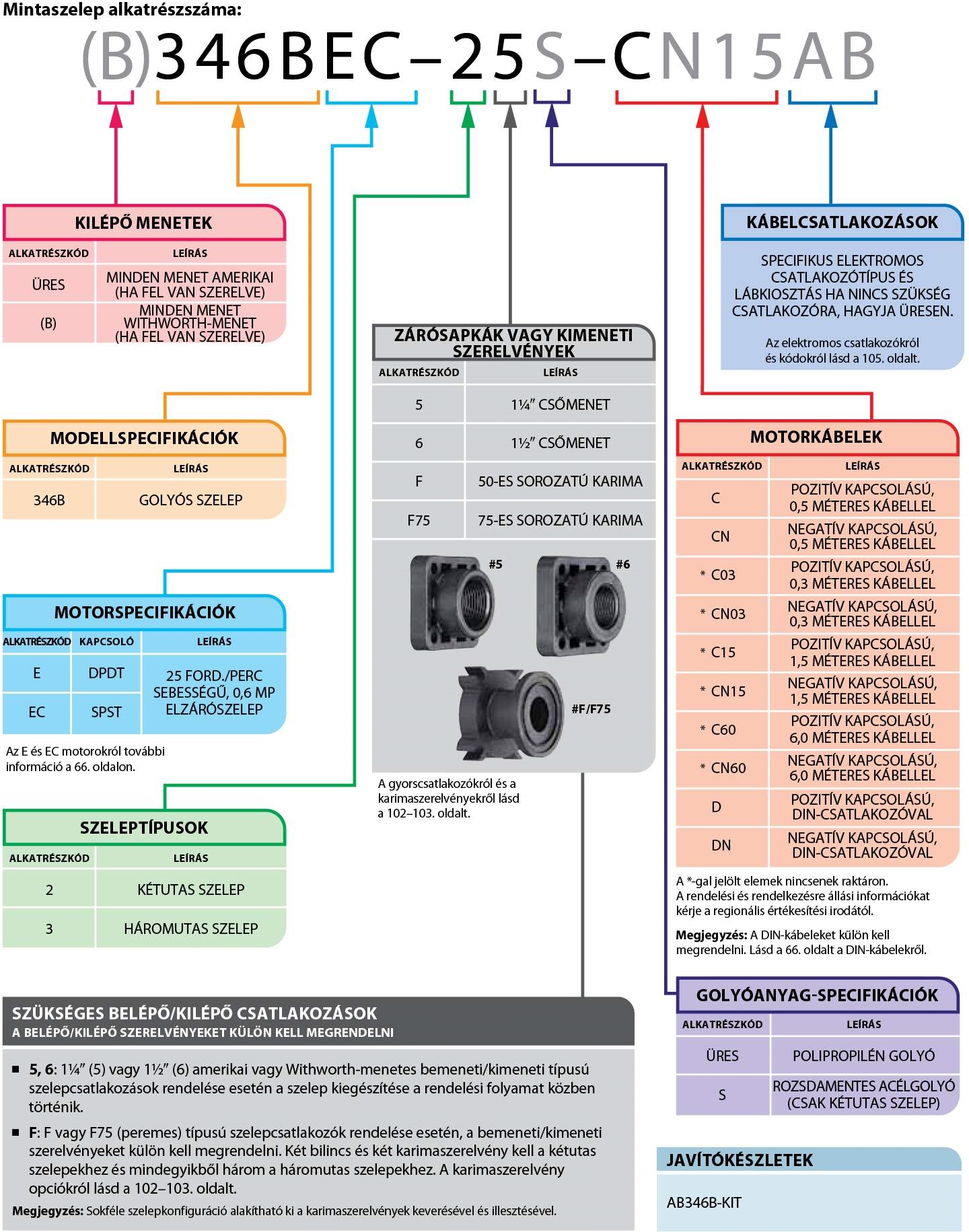 A 346BEC golyós elzárószelepek az E vagy EC típusú motorokkal és kábel- vagy DIN elektromos csatlakozásokkal kaphatók. A DirectoValve motorokról további információért lásd a 66. oldalt.