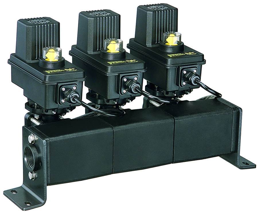 A TeeJet® 440BEC sorozatú DirectoValve szeleptömb kényelmes, kompakt megoldás több 344BEC elektromos golyós szelep telepítéséhez. Ez a rendszer szükségtelenné teszi a cső- vagy tömlőelágazások házi elkészítését, ezáltal jelentősen csökkenti a felszereléshez szükséges időt és a folyadékszivárgás lehetőségét.