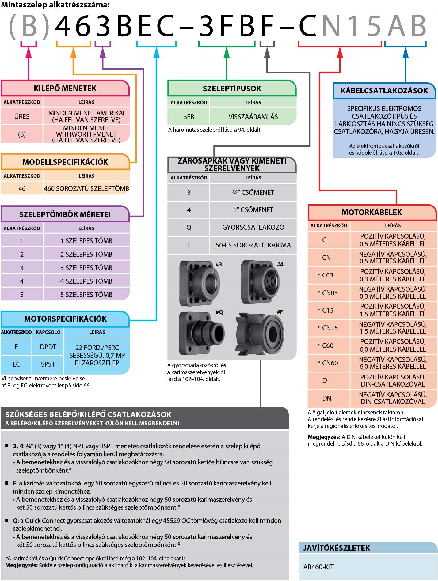 A 460FB visszaáramlásos szeleptömbök a nyomás visszaáramlását biztosítják a szórókeret vezetékeitől a tartályba akkor, amikor a szelep kikapcsolt állásba kerül. Kapható E vagy EC sorozatú motorokkal kábel- vagy DIN elektromos csatlakozásokkal. A DirectoValve motorokról további információért lásd a 66. oldalt.