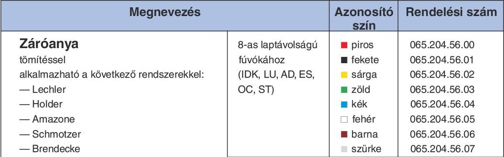 - Csak a sapkánál adja meg az alkatrészszámot és a színkódot. Példa: 065.204.56.00 (piros)