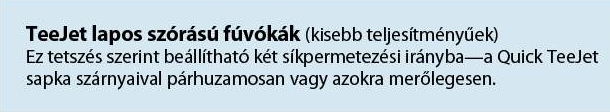 - A Quick Teejet sapkák hornyoltak, a hornyolás illeszkedik a szórófejtesten található tájolófülekhez.