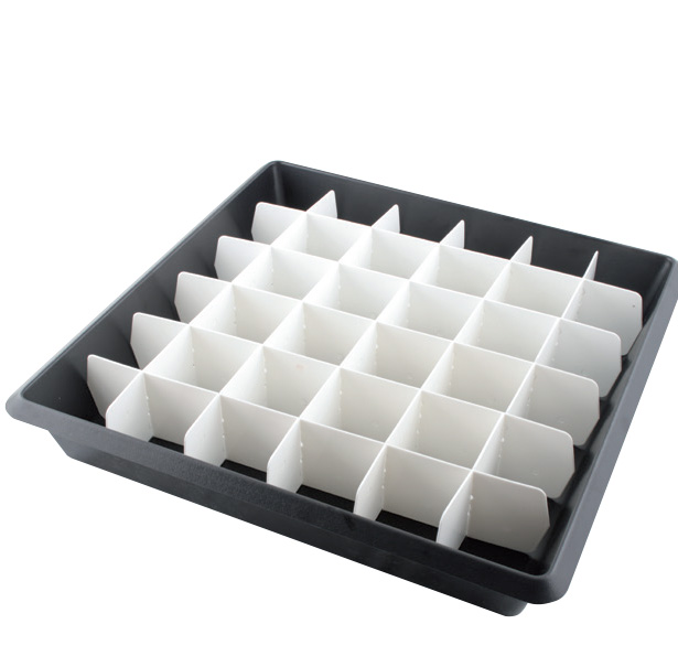 - A tálcák mérete 50 x 50 cm, ami megfelel a műtrágyaszórók keresztirányú szórásegyenletességének vizsgálatára vonatkozó európai EN 13739 szabvány követelményeinek.