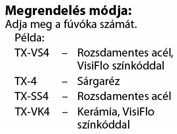 - A TX-VS1 és a TX-VS2 csak Visiflo színkódolású rozsdamentes