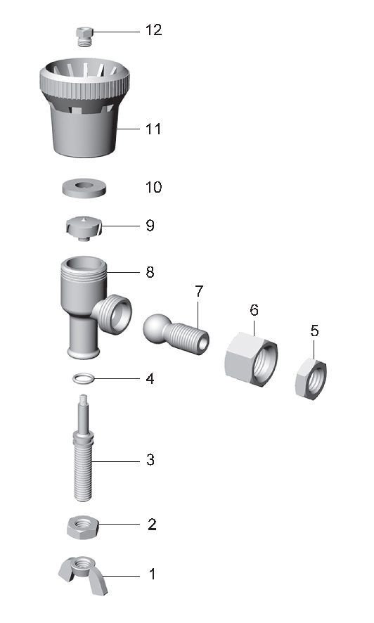 - Magas nyomású, 1-állású, fojtószelepes, állítható, minőségi réz szórófejtest, 1/4" biztosító anyával.