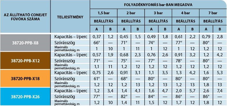 - Biztosítja a permet szabályozhatóságát a tömör sugártól az üreges kúpos szórásképig.