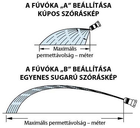 - A fúvóka "A" és "B" beállítása a két szélső helyzetnek felel meg.