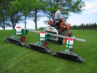 A Trama vontatott gépként szintén kaszálógép vagy kistraktor után kapcsolható, de gyakran használják a hátsó 3-pontos emelőszerkezetre, függesztett változatban is. Különleges előnye, hogy több egymás mellé helyezett Trama gép fügesztett változatban is üzemeltethető. Ezzel összességében igen nagy munkaszélesség alakítható ki, amelynek nagy területetk keelésekor komoly előnyei vannak. Mivel minden egyes Trama külön tartja a kerék talajkapcsolatát, és ezzel a fúvóka talajszint feletti állandó távolságát, a gépcsoporttal egyenetlen talajon is nagy fogásszélességgel lehet dolgozni.
