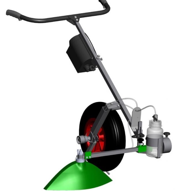 Ennél a modellnél a védőernyő tartókonzolja jobb oldalra 70cm-ig kitolható. A műanyag védőernyő automatikusan kitér hátrafelé, ha akadálynak ütközik, majd visszaáll eredeti helyzetébe. A gép különösen jól használható akkor, ha a szilárd burkolatú útról kell oldalirányban bozótos, puha talajú területet kezelni.