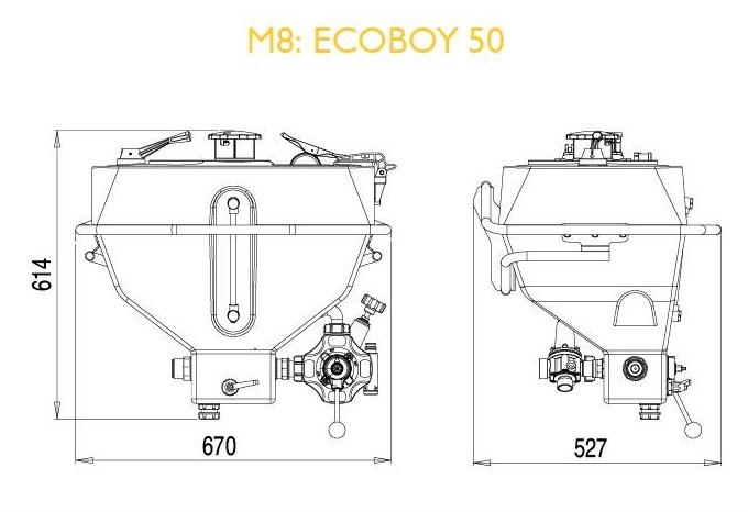- felszerelő kit: a tartály egy rugós kiemelő kar segítségével 75 cm magasságig kiemelhető.
