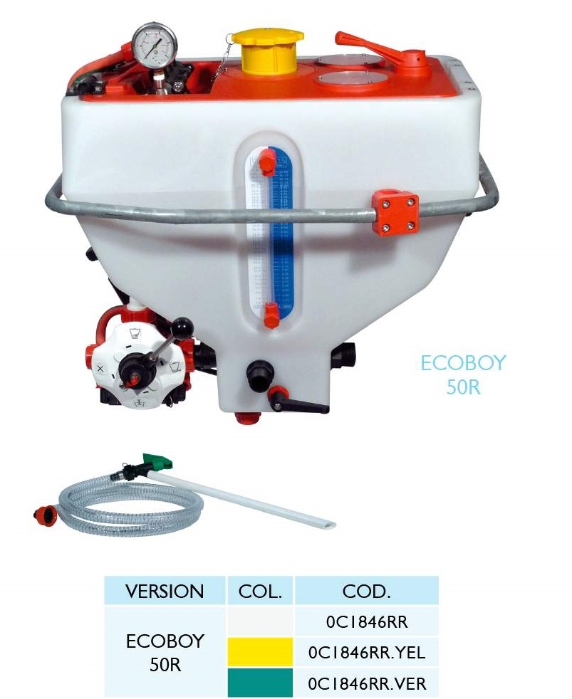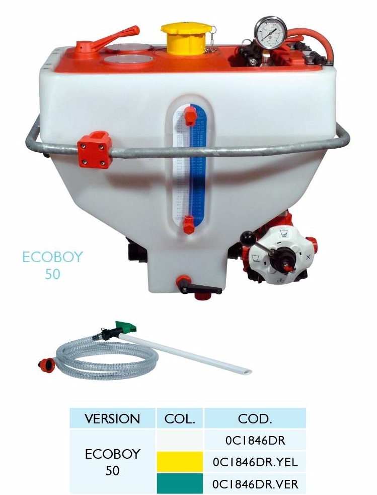 - Tartozékok: gyors betöltő nyílás, rotációs szórófej, bemosó fúvóka, felszívó készlet a vegyszerekhez, vázszerkezet, pisztoly és felszívó tömlő KIT, 5 utas golyósszelep, iztonsági szelep