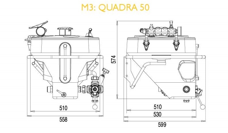 Könnyen felszerelhető bármilyen típusú permetezőre, hidraulika csatlakozóval jobb és bal oldalon.