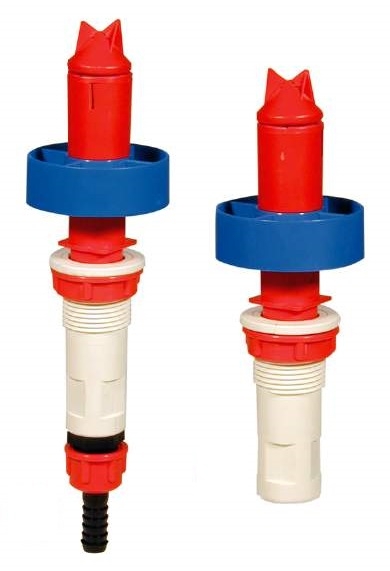 Vegyszeres kannák kimosására alkalmas szeleppel ellátott rotációs szórófej.