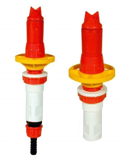 Vegyszeres kannák kimosására alkalmas szeleppel ellátott rotációs szórófej.